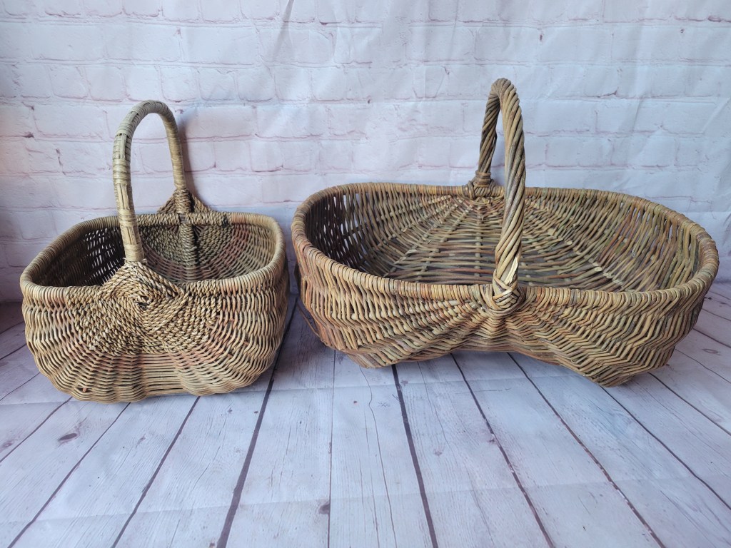This auction has glass carboys, wooden step ladders, majolica planters, garden, wicker, Empoli glass, buttocks baskets, vintage kitchen, antique tool caddy, and a mushroom incense smoker.