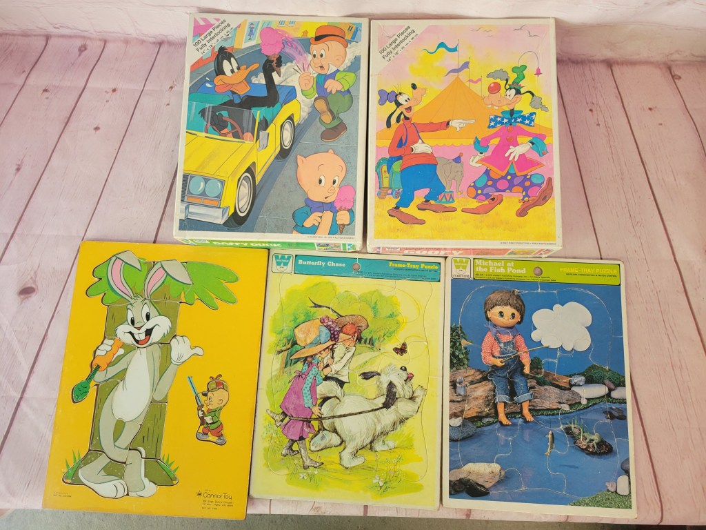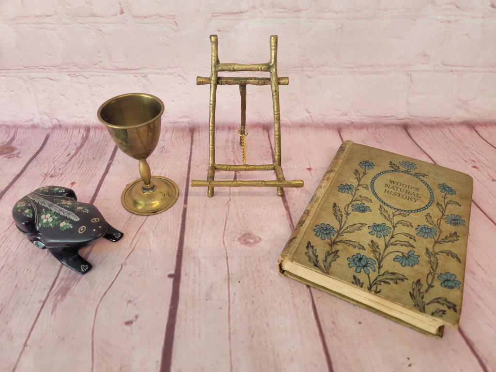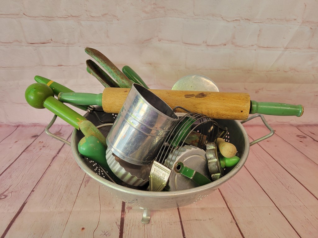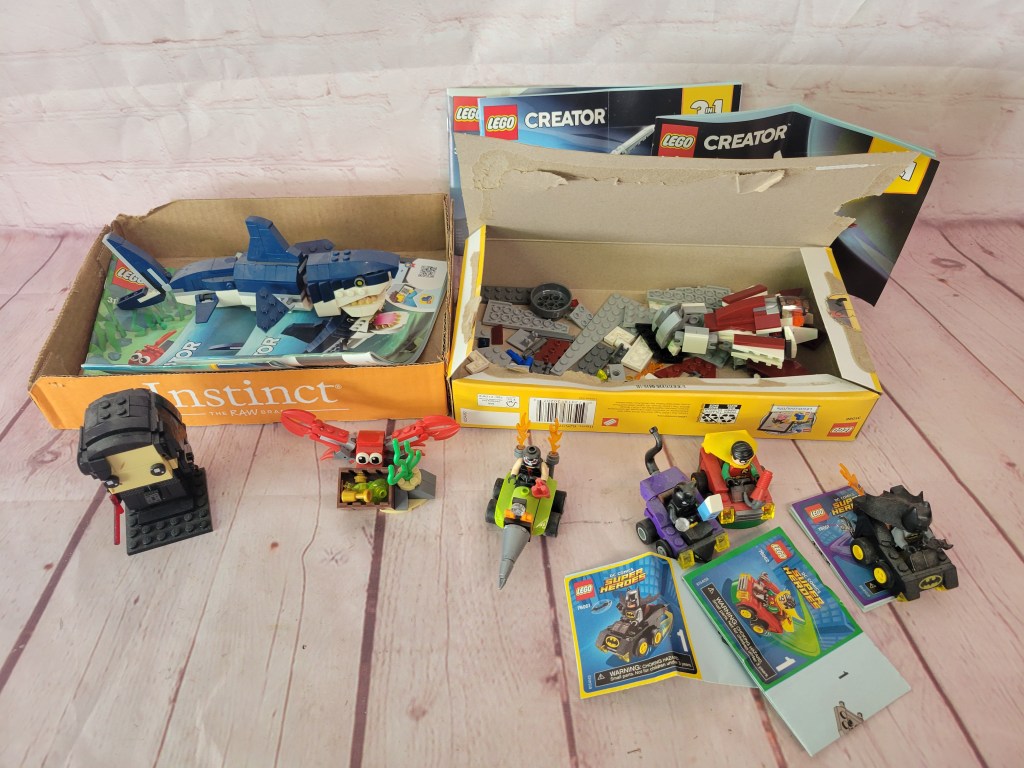 Look for primitives, some vintage glass, and unique items in the first half of the lots. Then scroll through to find vintage toys, Legos, K’nex, Bionicle, Dreamblade, MechWarriors…
