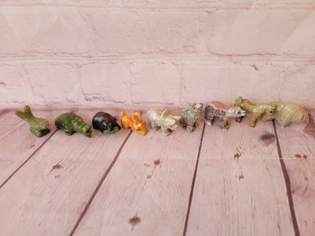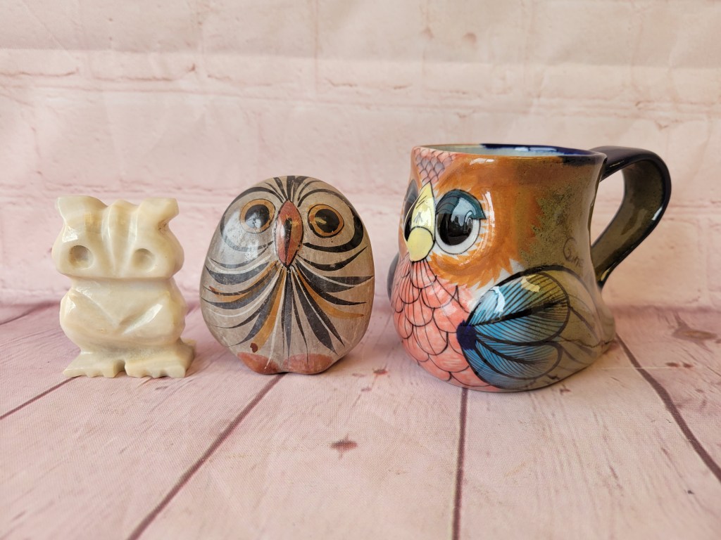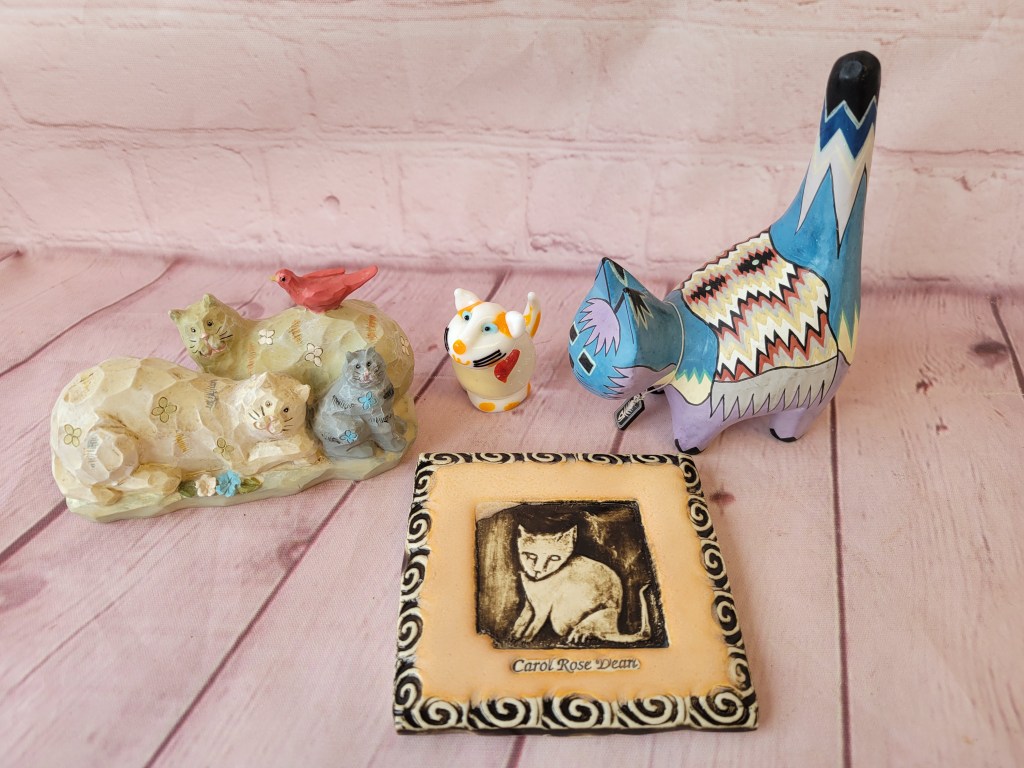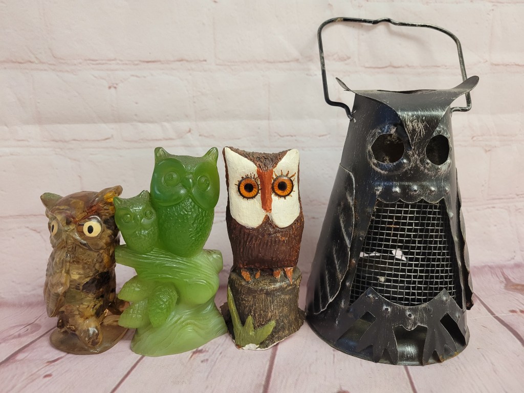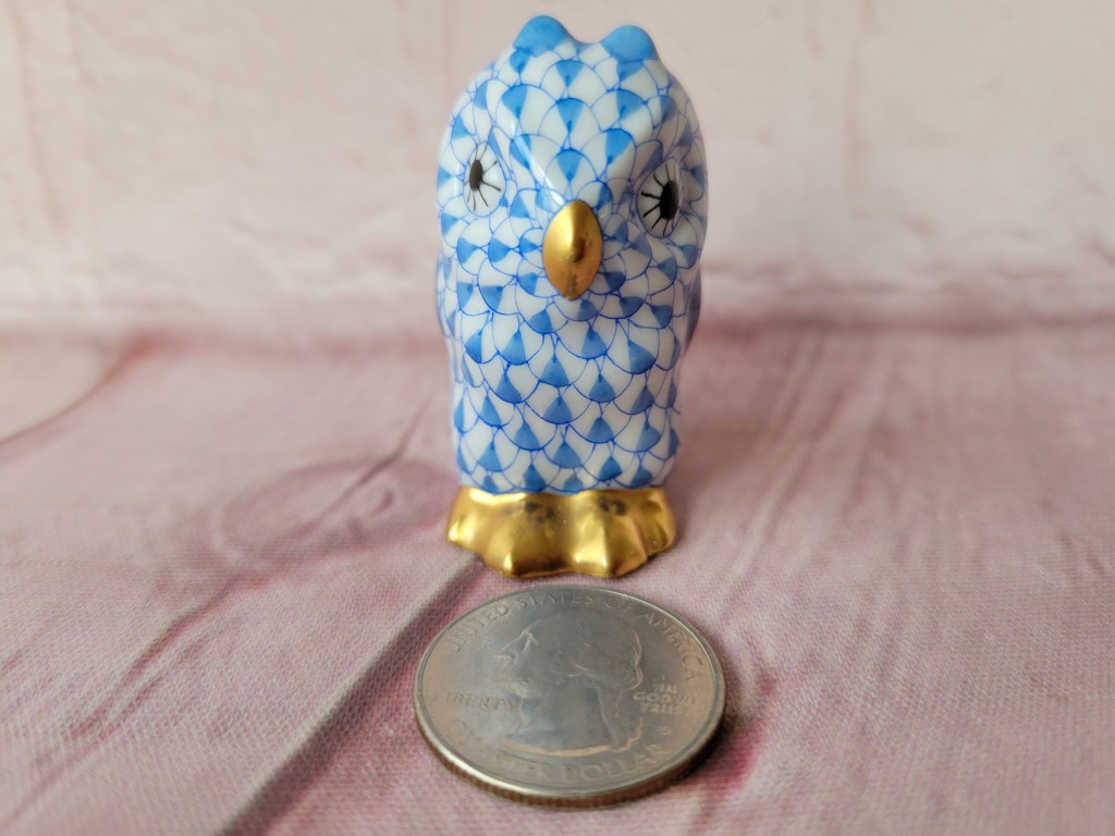 In this small auction, we have McKenzie Child’s, Herend minis, brass, lots of owls, cats, some pretty glass including swung vases, floral frogs, a few primitives and unique whatnots.